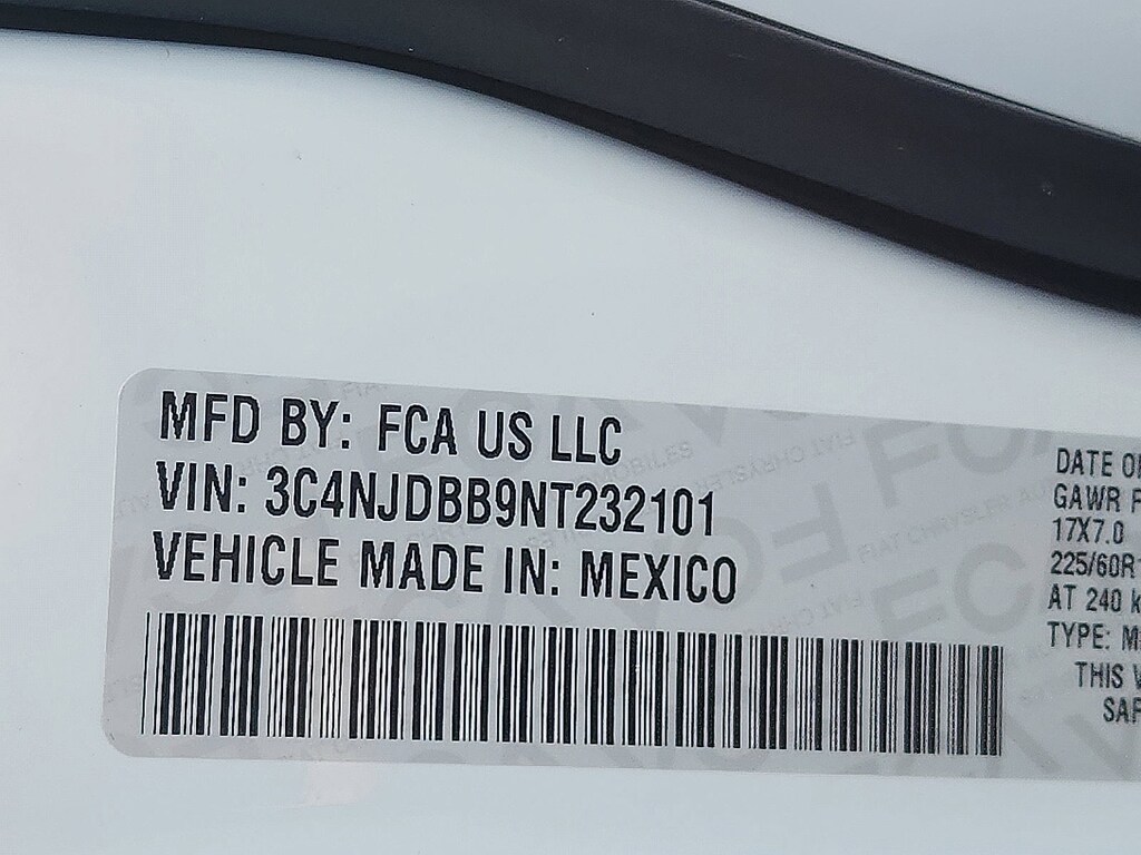 ENGINE: 2.4L I4 ZERO EVAP M-AIR W/ESS (STD), BRIGHT WHITE CLEARCOAT, BLACK, PREMIUM CLOTH/VINYL BUCKET SEATS, Voice Recorder, Vinyl Door Trim Insert, Variable Intermittent Wipers, Uconnect w/Bluetooth Wireless Phone Connectivity, UConnect 5 w/Seek-Scan, Clock, Aux Audio Input Jack, Steering Wheel Controls and Voice Activation, Trip Computer, Transmission: 9-Speed 948TE Automatic.